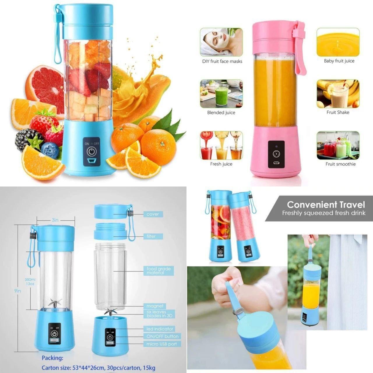 "6-Blade Technology: Equipped with 6 powerful blades to blend fruits, vegetables, and more, providing smooth, creamy juices and milkshakes with ease and consistency every time. Built-In Jar & Bottle: Features a built-in jar and juice mixer bottle, making it easy to blend and drink from the same container, saving time and space in your kitchen or on the go. USB Rechargeable: Designed for portability, this juicer is USB rechargeable, making it convenient to charge anywhere, whether you're at home, in the office, or traveling."